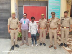 वालों को अचानक देखकर पीछे मुड़कर भगना चहा तो पुलिस ने एक बारगी दबिश देकर उस व्यक्ति को मौके पर ही रोक लिया पकड़े गये व्यक्ति से नाम पता व भागने का कारण पुछा गया तो अपना नाम भीमराज उर्फ प्रिंस पुत्र धर्मेन्द्र प्रसाद नि0 बीचपुरा भोपुरा थाना घोसी जनपद मऊ उम्र करीब 19 वर्ष बताया जमा तालाशी से कुछ मोबाईल बरामद हुई। पकड़े गये व्यक्ति भीमराज उर्फ प्रिंस पुत्र धर्मेन्द्र प्रसाद निवासी बीचपुरा भोपुरा थाना घोसी जनपद मऊ के यह कृत्य जुर्म धारा बताते हुए न्यायालय चालान किया गया ।